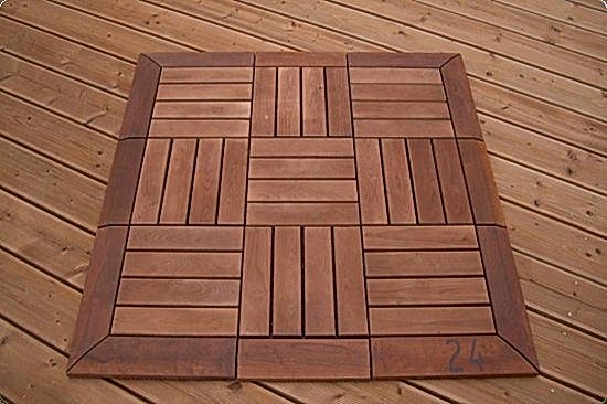 Karo Deck Uygulaması; ağaç malzemenin karo olarak hazırlanarak uygulanacak alanda montajı yapılmasıdır. Bu uygulama daha çok küçük alanlarda tercih edilir. Karo imalatı alt taşıyıcısı kendi ağacından yada plastik olarak imalatı yapılır. Bakımı kolay bir uygulamadır.